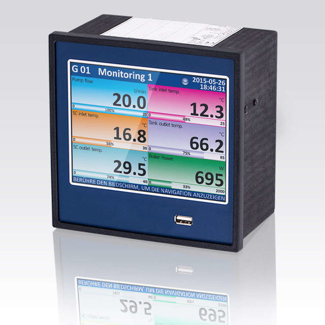 多通道过程显示器 144 x 144 mm 带数据记录器、触点和模拟输出 多达 60 个通道的数据采集 2 个可配置的采样率(最大 10 Hz) 广泛的触发功能 内部存储器 1.5 GB 通过 USB 记忆棒或以太网传输数据
