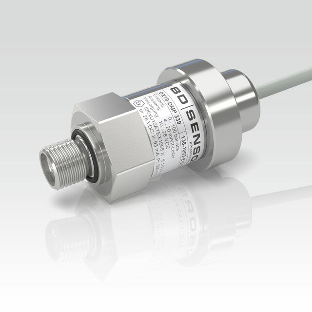 DMP 339 工业压力变送器具有 G 1/4“ 齐平压力端口,设计用于包括计量系统在内的各种机械设备。它是测量粘性和糊状介质压力的理想选择,因为只产生一个小的死腔。 消除了机械中的物料堆积、滴落和拉丝。这提高了机器的效率和可靠性。 DMP 339 可提供各种电气连接,从而确保对应用条件的出色适应性。